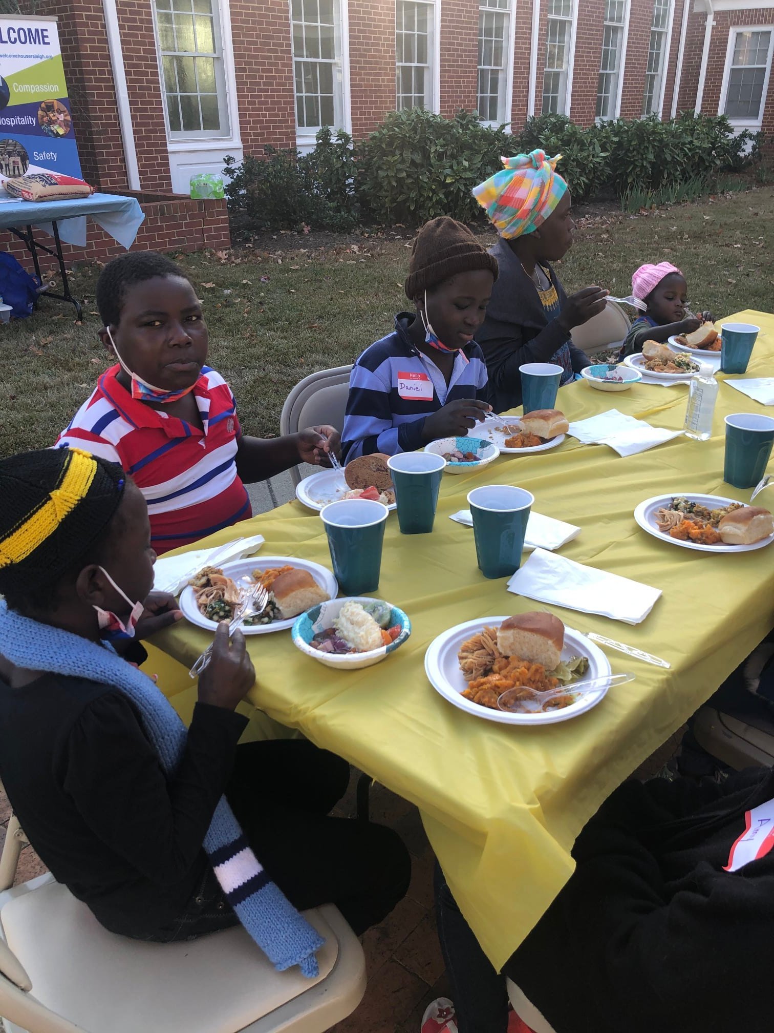 Ridge Road Baptist Church of Raleigh hosted the first Thanksgiving meal for the immigrant/refugee guests of Welcome House Raleigh. A group of about 35 people gathered on the church grounds to share a traditional American Thanksgiving meal with these new neighbors. The guests were Congolese and Afghan refugees, including several that are new arrivals in the United States and our state. It was the first Thanksgiving—celebration and meal—for all of the refugee guests.